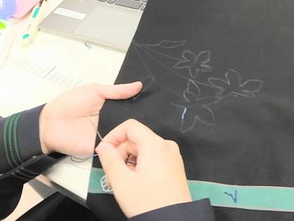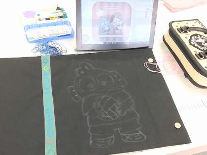 1年生の家庭科では『ファイルカバー』を作っています。