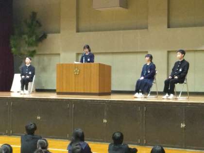 6時間目に『令和7年度 前期生徒会選挙』の立ち会い演説会を行いました。