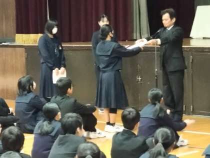 そして代表生徒に修了証を渡し、校長講話を行いました。