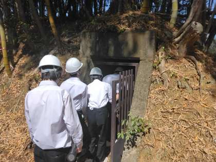小さな防空壕跡にも入りました。中は曲がっていて真っ暗です。