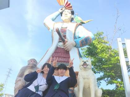 吉備団子で有名なので、桃太郎がいました!