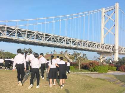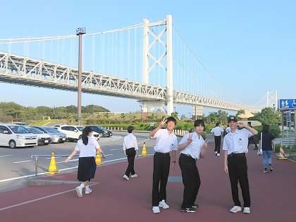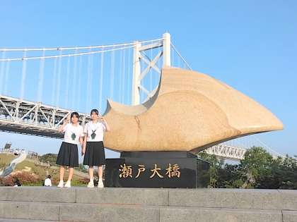瀬戸大橋の途中にある与島SAで記念撮影です。