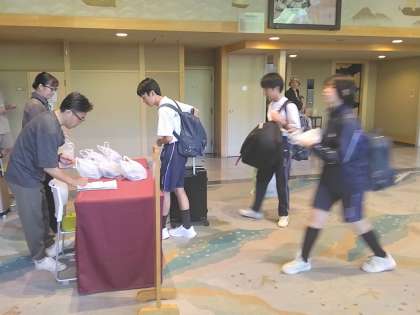 部屋ごとに鍵を返して財布を受け取って、ホテルを出発します。