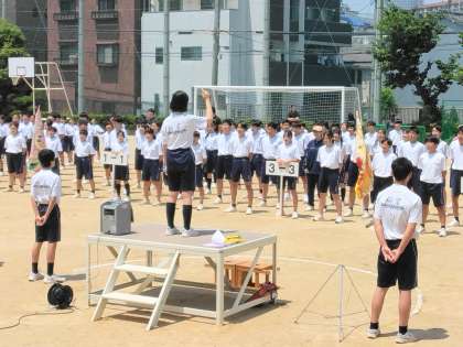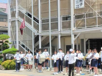 入場行進・校歌斉唱ともに、吹奏楽部の演奏で行います。