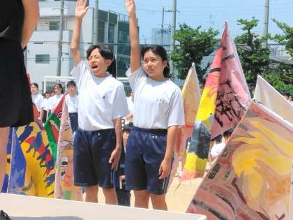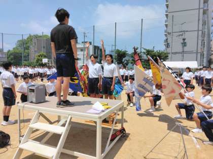 選手宣誓も学級旗に囲まれて、しっかりできていますね〜。