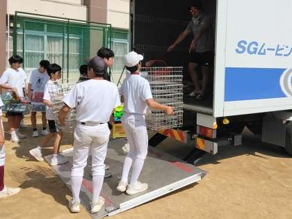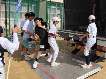 トラックへの荷物積み込みは、部活の子どもたちが頑張ってくれました。