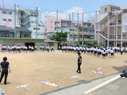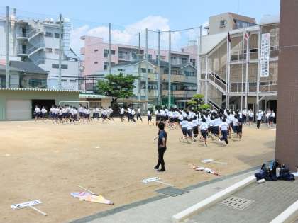 狭い運動場ですが、長居競技場をイメージして、退場練習もバッチリです!