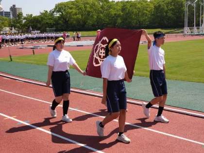 吹奏楽部の生演奏で入場行進をします。