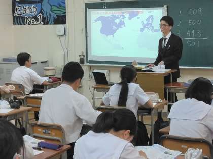 3年生の社会では『教育実習生』が授業をしています。