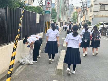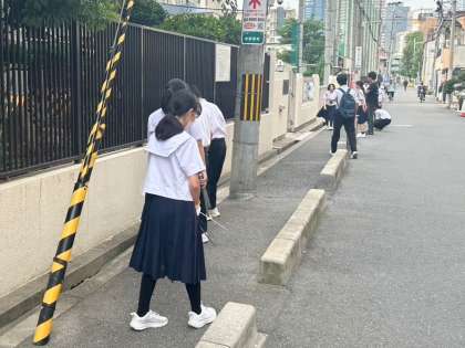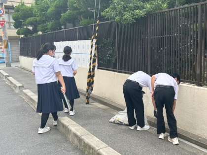 生徒会役員が、みんなが登校する朝早くから、学校周りの清掃活動をしています。