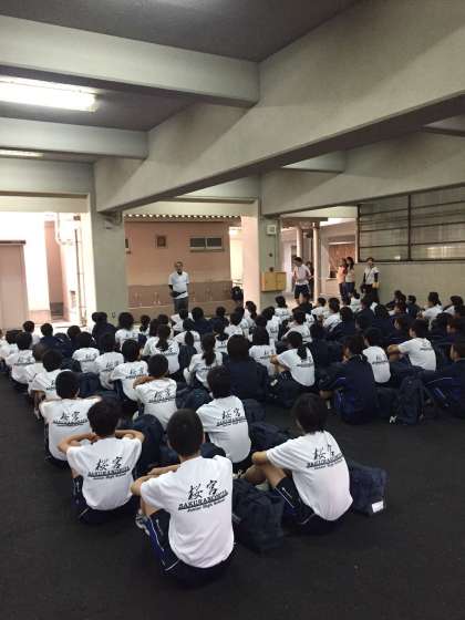 5/25(水)1年生が一泊移住で京都府立青少年海洋センターへ向けて出発しました。天候は少し曇り空ですが、過ごしやすく活動しやすいようです。生徒たちは無事に現地に到着した模様です。