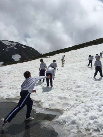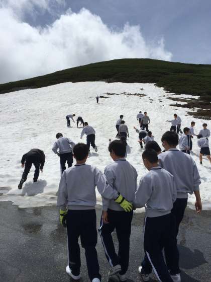 昼食中、霧で覆われて真っ白だった風景も、一転晴天となり雪遊びもできるコンディションとなりました。