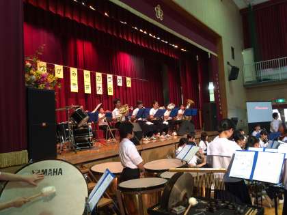 6/12(日)第3回ひがみやカラオケ演芸大会のイベントに招かれて吹奏楽部がゲスト出演しました。キャンディーズ・メドレーや、宇宙戦艦ヤマトや銀河鉄道999といった懐かしい曲が演奏されていました。また中島みゆきの時代を生徒が歌うなどカラオケ大会ならではの演出でした。