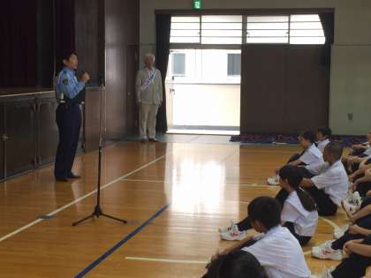 全校集会で交通安全についての啓発が行われました