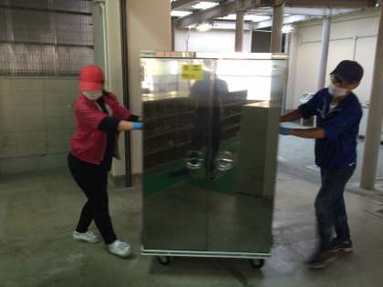 9/2(金)学校調理(親子方式)の給食が始まりました。11時30分、桜宮小学校で調理された給食が届けられ、配膳員のみなさんによってクラスごとに振り分けられました。12時30分に4時間目が終わると楽しみにしていた生徒たちが嬉しそうに取りに来ていました。生徒たちだけでなく職員も皆さん美味しいと好評でした。