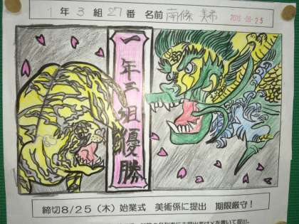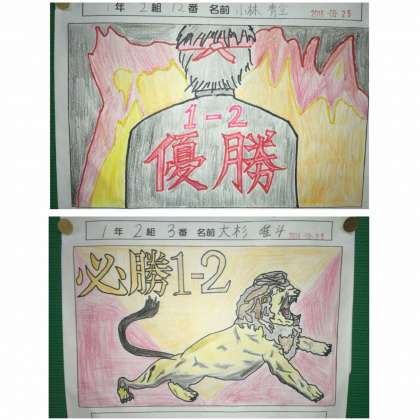 体育大会の学級旗が各クラスで選ばれました。各クラス特徴をとらえた作品がたくさんあり、選ばれた作品の他にも素晴らしい作品が数多くありました。