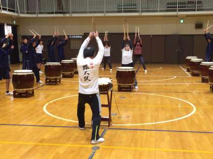 1/16(月)和太鼓の授業が行われました。地域の和太鼓演奏グループの「櫻太鼓」さんの協力で、伝統音楽の基礎的な奏法やうかれ太鼓という曲を練習しました。