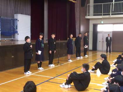 後期生徒会あいさつ、次期生徒会あいさつ、修了証授与