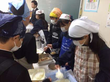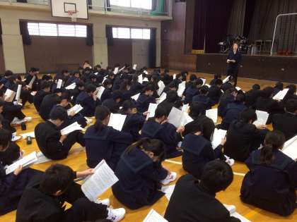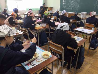 1年生の中学校生活初の学年集会と給食が行われました。