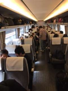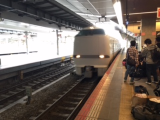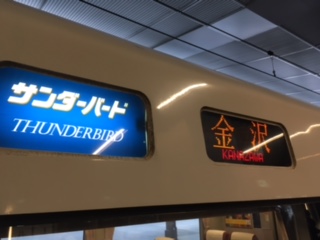 無事サンダーバード乗車しました。早速、座席を向き合わせにしたり、写真を撮ったり、おやつタイムだったり、和気あいあいモードの車内です。