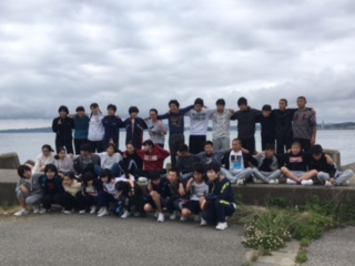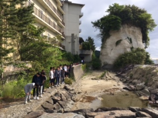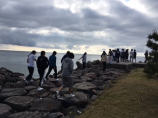 2組の様子です。廃墟横を通って海岸へ出ました。