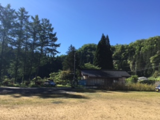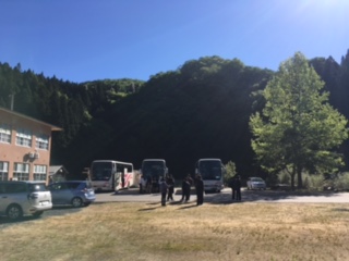 おはようございます。三日間とも晴天に恵まれた修学旅行です。退村式待ちの敷地です。生徒たち8時15分に各民家から集合予定です。