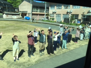 バスの車内もいつまでも手を振って、別れを惜しみました。バスはいざ金沢市内へ出発しました。