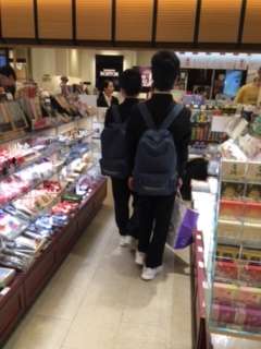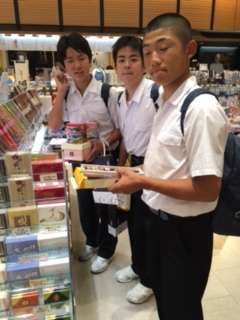 14時駅集合に向けて、駅内に生徒たちは来ています。お土産購入は続いています。
