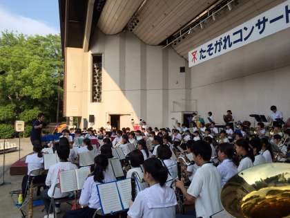 7/7(金)大阪城野外音楽堂でたそがれコンサートが行われ、本校吹奏楽部が出演しました。雨が心配されましたが、天候にも恵まれて、第1回のスタートを飾るのにふさわしいステージとなりました。