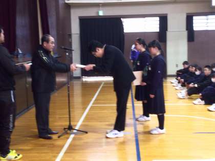 12/18(月)全校集会が行われ、平成29年度中学生『税についての作文』に応募して3名の生徒が優秀作品として表彰されました。おめでとうございます。