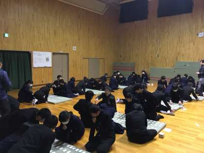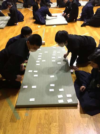 1月26日 5、6時間目を使って2年生 百人一首大会を開催しました。この日のために授業やクラスの取り組みにてたくさんの句をみんなが覚えました。