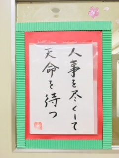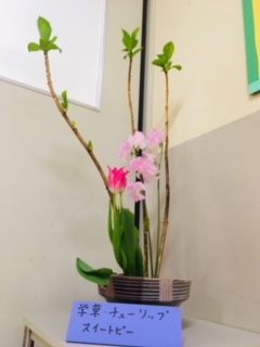 茶華道部が校長室の前と玄関に飾ってくれました。チューリップの蕾が開きました。3年生は懇談終わり、目標目指してラストスパートですね。1.2年生も明後日から学年末テストです。有終の美を飾れますよう。
