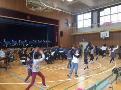 3/3(土)桜宮小学校にてふれあいコンサートが開催され、吹奏楽部が出演いたしました。たくさんの方が見にこられて、毎年恒例の小学生と吹奏楽部のコラボ企画では、今年もよさこいソーランを演奏し、集まってくれた小学生の皆さんが、元気いっぱいの踊りを披露してくれました。