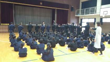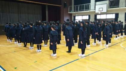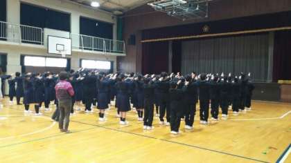 4月10日(火)5時間目、1年生は引き続き体育館に集まり、集団行動の練習を行いました。