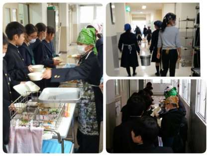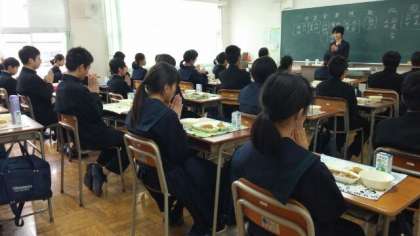 給食は2日目、今日のメニューはカツカレーです。(写真は1年3組)