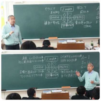 子どもたちは、SPトランプから導き出される自分の長所や特性を知るとともに、その特性を生かした仕事、その仕事の中での自分の生かし方について学習しました。