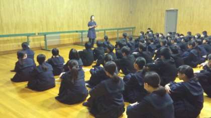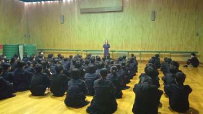 1年生同様、8時15分に教室から武道場に移動し、8時20分には学年集会が始まりました。