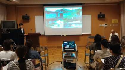 学校長の挨拶に続いて、上山先生からスライドを使って修学旅行の目的や行程を説明し、さらに説明会用資料のプリントを見ながら持ち物や安全管理などの詳細について説明しました。最後に学年主任の増田先生から学年の様子やお願い、修学旅行全般にかかわることについて話をしました。