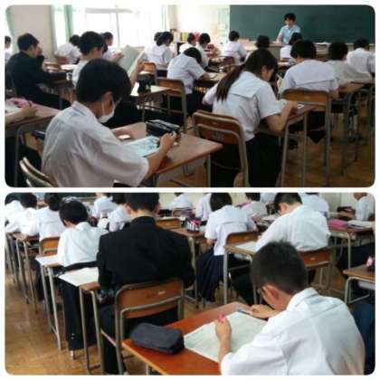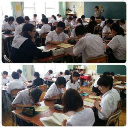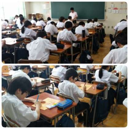 5月18日(金)5時間目、1年生は出来上がったしおりを見ながら、一泊移住の行動の流れを各教室で確認しました。