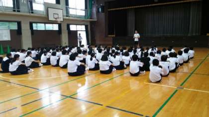5月18日(金)6時間目、教室での説明を聴いたあと、体育館に移動し、一泊移住中の集団としての行動の流れを全体で確認しました。