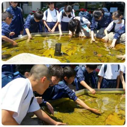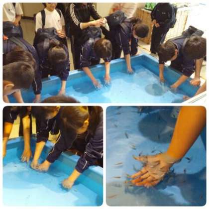 昼食後、魚っ知館の中で魚に触れたり、水族館の魚を見学したり、楽しい時間を過ごしました。