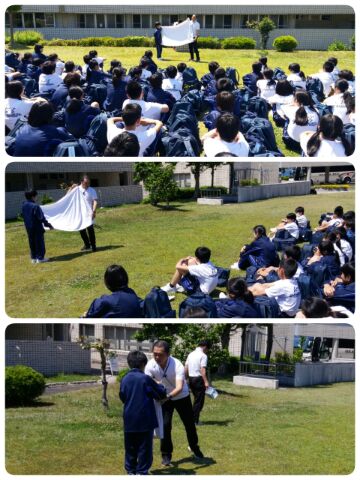 センター代表の方の挨拶に続いて、センター利用の仕方、シーツの使い方と畳み方の説明を受けました。