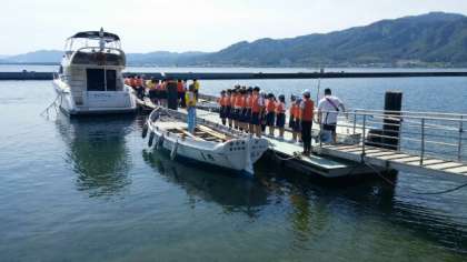 指導員の方々の指導でボートに乗り込ンデいきました。