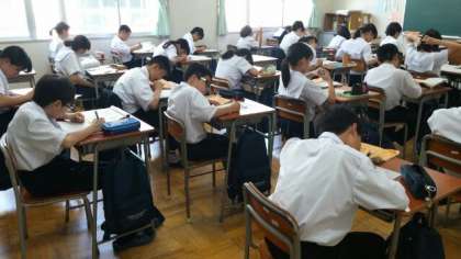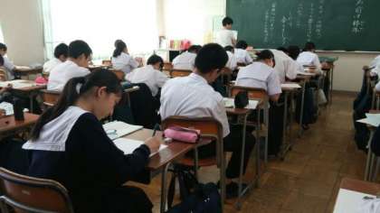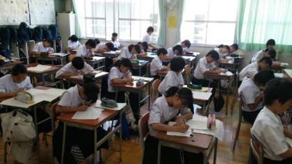 5月24日(木)5時間目、1年生は各教室で一泊移住の取組を振り返るプリントを作成し、できた生徒から感想文を書いていました。