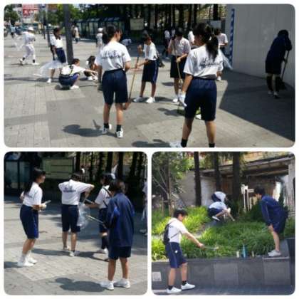 PTA の皆さんがゴミの種分けをしていただき、清掃用具の片付けをしてクリーン活動を終わりました。