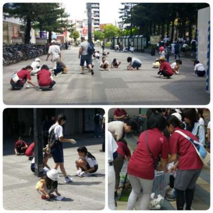 へばり付いたガムの除去や植え込みのゴミ拾いなど30分ほどの清掃で多くのゴミを集めました。