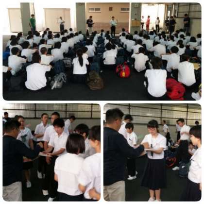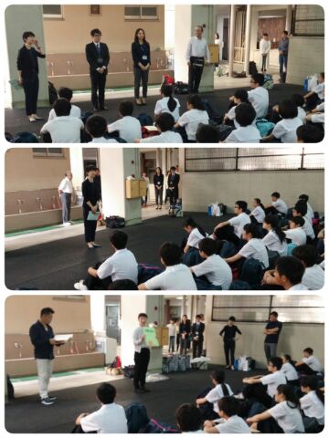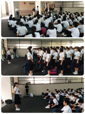 午前7時に学校・ピロティに集合、7時10分から出発式を行いました。
