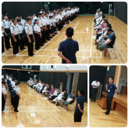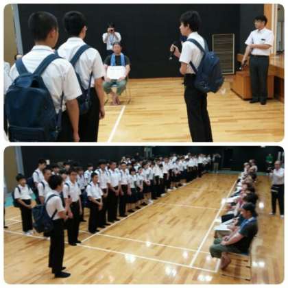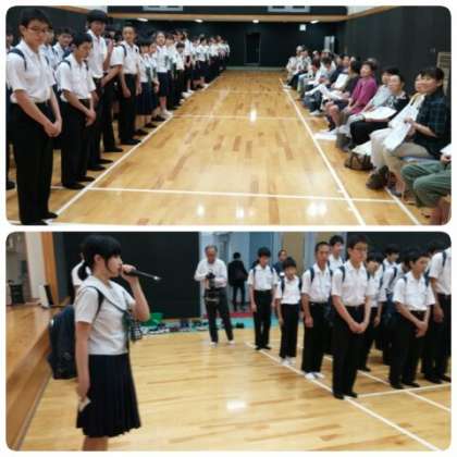 始めにセンター室長の下村さんから歓迎の挨拶があり、続いて校長先生、生徒代表の1組委員長の安藤君から各家庭の皆さんへお願いの挨拶をしました。
