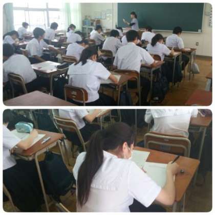 6月13日(水)5時間目、2年生は各教室において、職場体験学習でお世話になった事業所の皆様への「お礼の手紙」の清書に取り組んでいました。