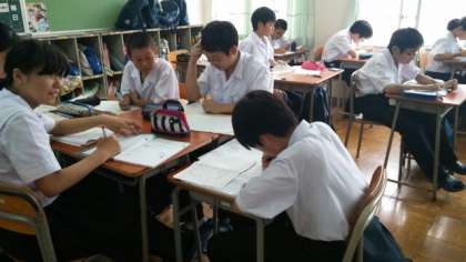 6月15日(金)5・6時間目、1年生は各教室で一泊移住の新聞づくりに取り組んでいました。